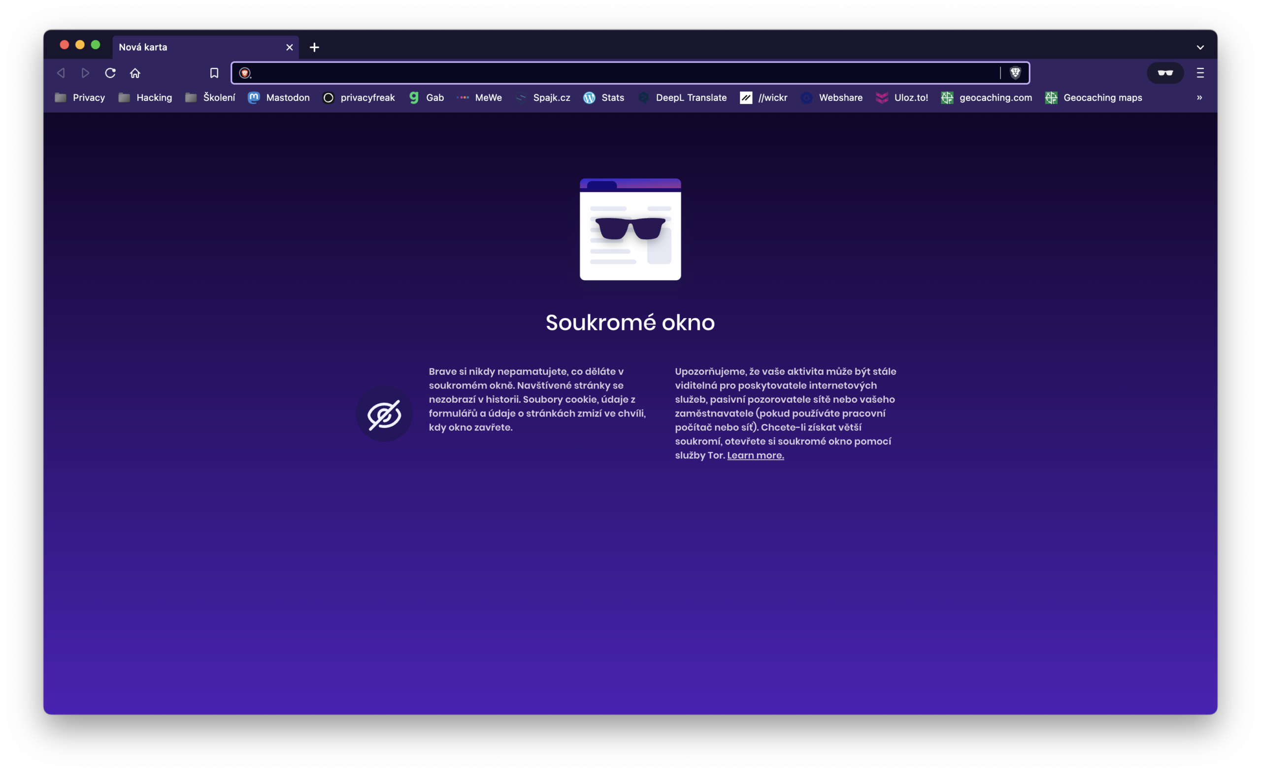 • Poskytovatel internetových služeb ví o všem, co jste dělali online. Jediná cesta je spolu se soukromým prohlížením používat připojení k síti VPN, která váš provoz šifruje, nebo jinou anonymizační technologii, jako například Tor. Některé prohlížeče (Brave) naštěstí tento druh ochrany nabízejí i v režimu soukromého prohlížení.