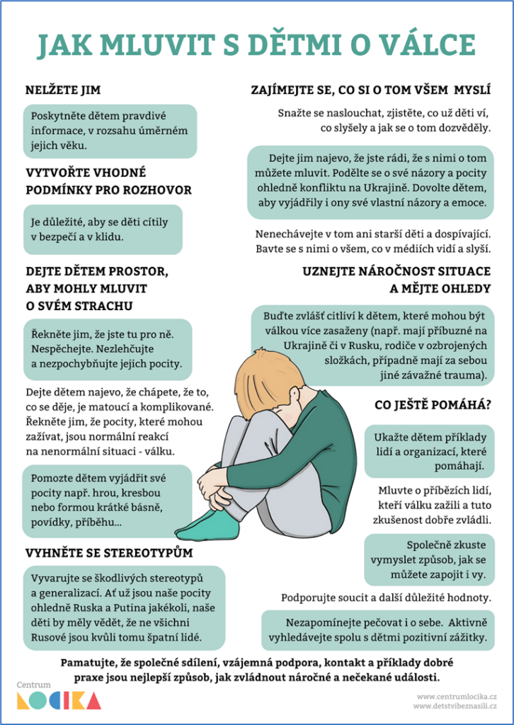 - Jak mluvit s dětmi: Člověk v tísni https://www.clovekvtisni.cz/jak-s-zaky-mluvit-o-valce-na-ukrajine-8561gp
