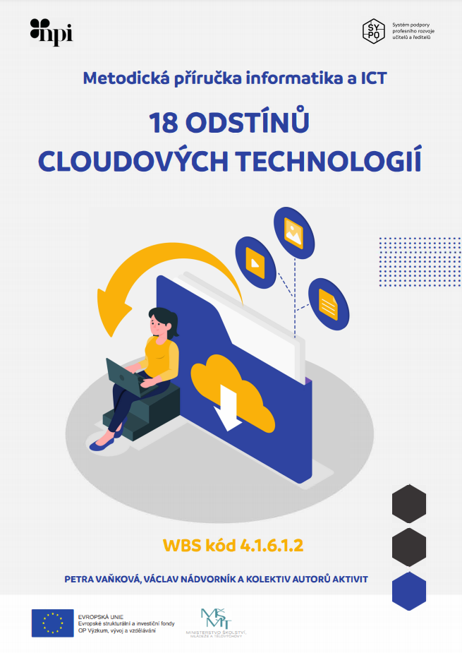 Cílem příručky je ukázat možnosti a způsoby zapojení cloudových technologií do výuky na základních i středních školách. Obsahuje 18 nápadů, aktivit nebo využití konkrétních aplikací, nástrojů či zařízení v hodinách informaticky zaměřených i v dalších předmětech. K základní orientaci v popisovaných aktivitách slouží kategorie jako věk/stupeň školy, vstupní požadavky na žáka, cíle aktivity, rozvíjené kompetence, potřebné hardwarové a softwarové vybavení. Součástí je popis přípravy na výuku, průběh a organizace výuky, reflexe učitele, příp. alternativní řešení či další nástroje či jiné zdroje.