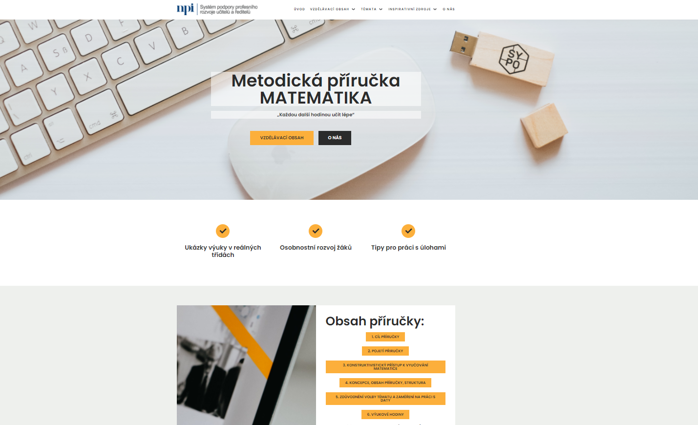 Webová verze inspirativní metodické příručky pro učitele rozvíjejí matematické znalosti, dovednosti, ale také osobnost žáků. Nabízí sdílení ukázek vyučovacích hodin z reálné třídy a spolupráci při hlubším zamýšlení se nad přípravou výukových hodin, nad formulací smysluplných cílů propojujících kognitivní a sociální složky výuky, nad formami práce žáků, reflexemi svého učení i učení spolužáků a nad mnoha dalšími oblastmi didaktiky matematiky, které zasahují do kvalitní výuky.