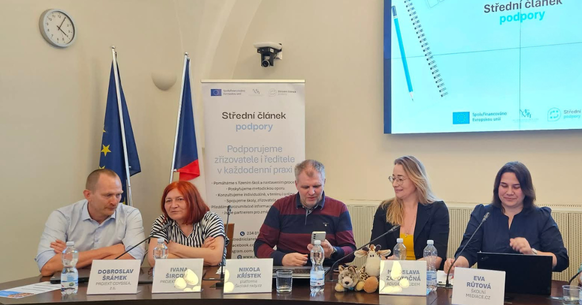 Druhý blok se soustředil na očekávání, kompetence a limity jednotlivých aktérů. Vystoupili Tereza Martínková, ředitelka Základní školy náměstí Curieových, Radka Tomášková, místostarostka obce Přerov nad Labem, Angelika Gergelová z Unie rodičů a Martin Procházka z České školní inspekce. Pozornost směřovala k tomu, kde nejčastěji vzniká nedorozumění mezi školou, rodiči a zřizovatelem, proč je důležité jasně vymezit kompetence a proč školy potřebují v některých situacích i právní a metodickou oporu.